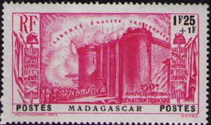 Мадагаскар, 1939, 1.25 fr. + 1 fr. П. металлография. 13 (1/2) х 13. черная и карминная