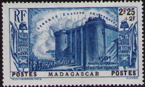 Мадагаскар, 1939, 2.25 fr. + 2 fr. П. металлография. 13 (1/2) х 13. черная и синяя