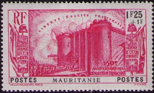 Мавритания, 1939, 1.25 fr. + 1 fr. П. металлография. 13 (1/2) х 13. черная и красно-оранжевая