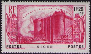 Нигер, 1939, 1.25 fr. + 1 fr. П. металлография. 13 (1/2) х 13. черная и карминная