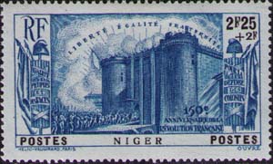 Нигер, 1939, 2.25 fr. + 2 fr. П. металлография. 13 (1/2) х 13. черная и синяя