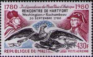 Портреты графа Рошамбо и Джорджа Вашингтона, орел — символ США.