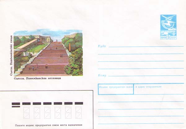 Одесса. Потемкинская лестница (архитектор Ф. К. Боффо, 1834—1841). Наверху лестницы — памятник герцогу Ришелье (скульптор Иван Мартос, архитектор А. И. Мельников, 1828).