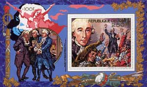 Марка издана с купоном, а также в блоке. На поле блока изображены аббат Сийес и Мирабо, обсуждающие переименование Генеральных штатов в Национальное собрание (12 июня 1789. Собственно переименование произошло 17 июня).