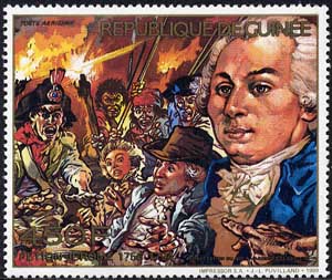Другие марки серии: Гвинея, 1989, Байи и Клятва в зале для игры в мяч Гвинея, 1989, Лафайет, воздушный шар |