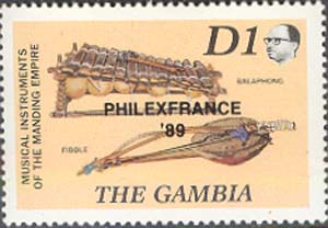 Надпечатка «PHILEXFRANCE’89» на марке М664 с изображением африканских музыкальных инструментов.