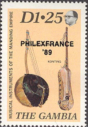 Надпечатка «PHILEXFRANCE’89» на марке М665 с изображением африканских музыкальных инструментов.