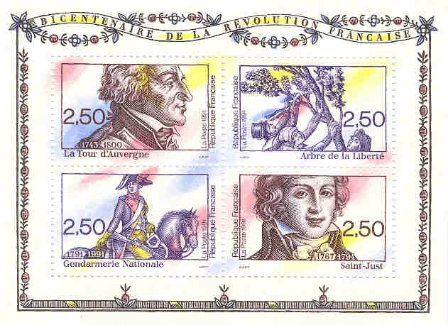 Марка выпущена также в блоке. Другие марки серии: Франция, 1991, Дерево Свободы Франция, 1991, Портрет Ла Тур д’Оверна Франция, 1991, Портрет Сен-Жюста Франция, 1991.06.01, |