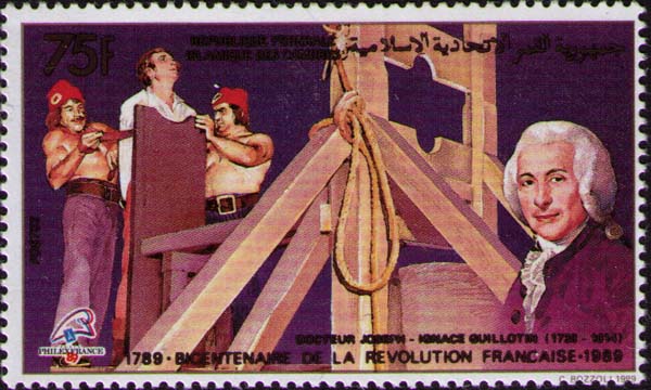 Доктор Жозеф-Игнасий Гильотен (неизвестный художник, 1784, Париж, Музей Карнавале), сцена казни на гильотине.