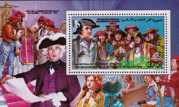 Марка издана в малом листе и в блоке. На поле блока —чтение декрета о Гражданском устройстве духовенства 12 июля 1790.