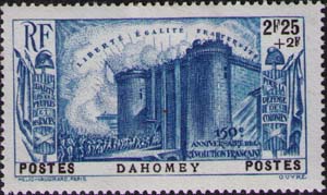 Дагомея, 1939, 2.25 fr. + 2 fr. П. металлография. 13 (1/2) х 13. синяяя и черная